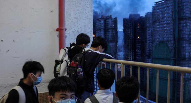 بدأ الحريق ظهر يوم الأربعاء على سقالات من الخيزران وشبكات البناء، ثم انتشر عبر سبعة مبانٍ في المجمع.
