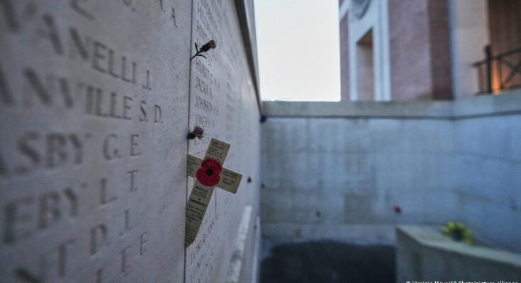 قاموا بوضع إكليلات الزهور، وغالبًا ما كانت من الخشخاش التذكارية، عند نصب مينين التذكاري للقتلى في إيبريس، وهي بلدة بلجيكية كانت في قلب القتال طوال الحرب التي استمرت أربع سنوات.